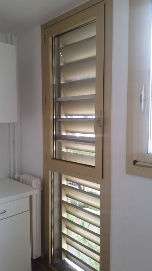 Cet appartement de Cagnes sur Mer était équipé de 4 fenêtres et 1 baie vitrée en aluminium simple vitrage datant des années 70 ! Pas le nec plus ultra de l’isolation… Nous avons donc changé l’ensemble des fenêtres et remplacé le tout par des fenêtres double vitrage alu couleur champagne !